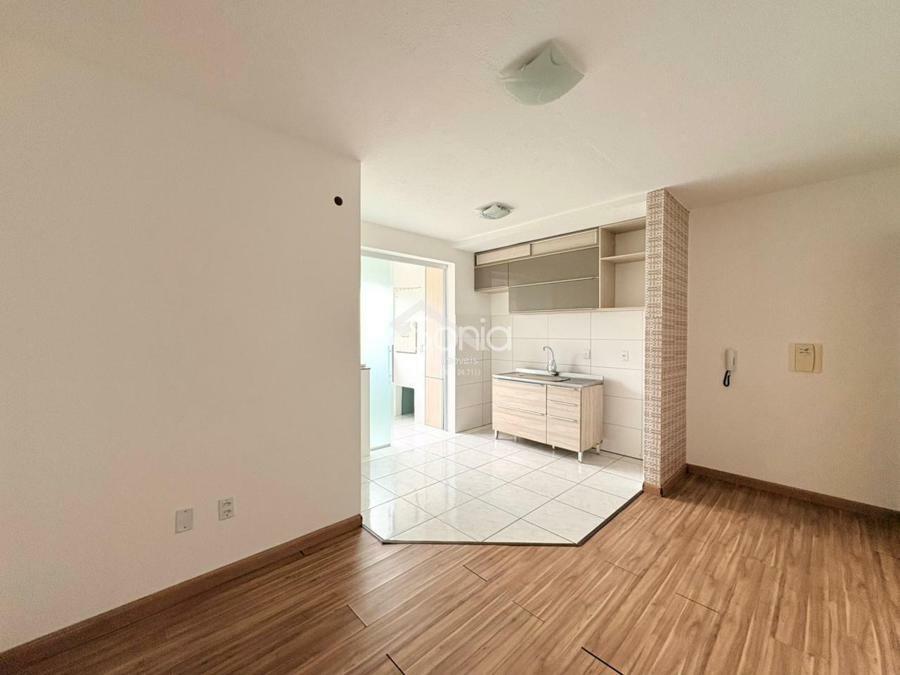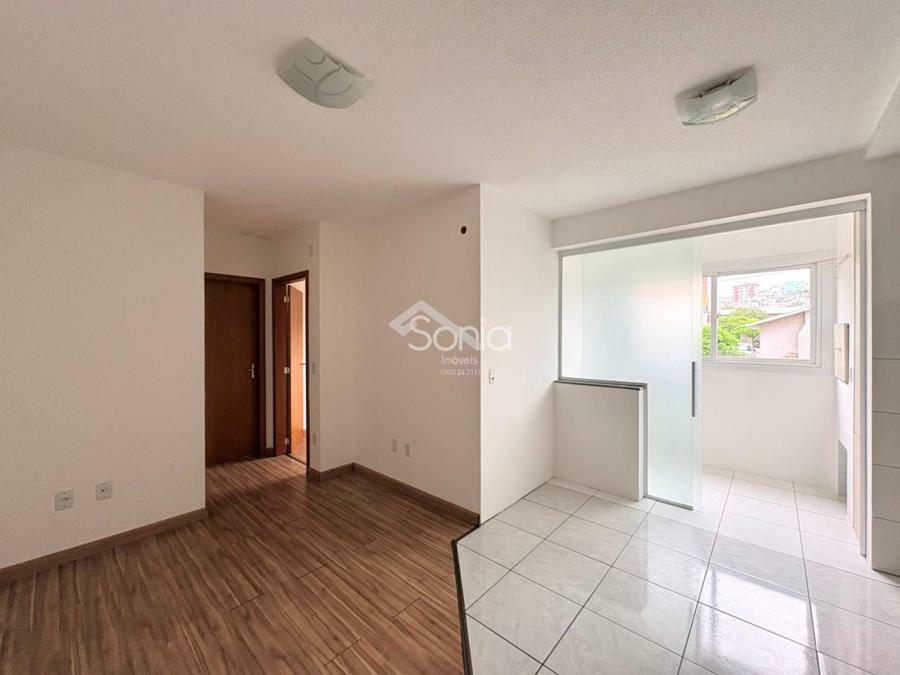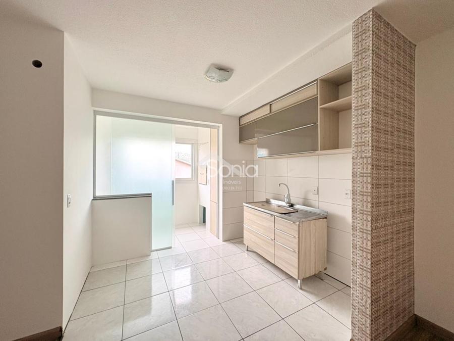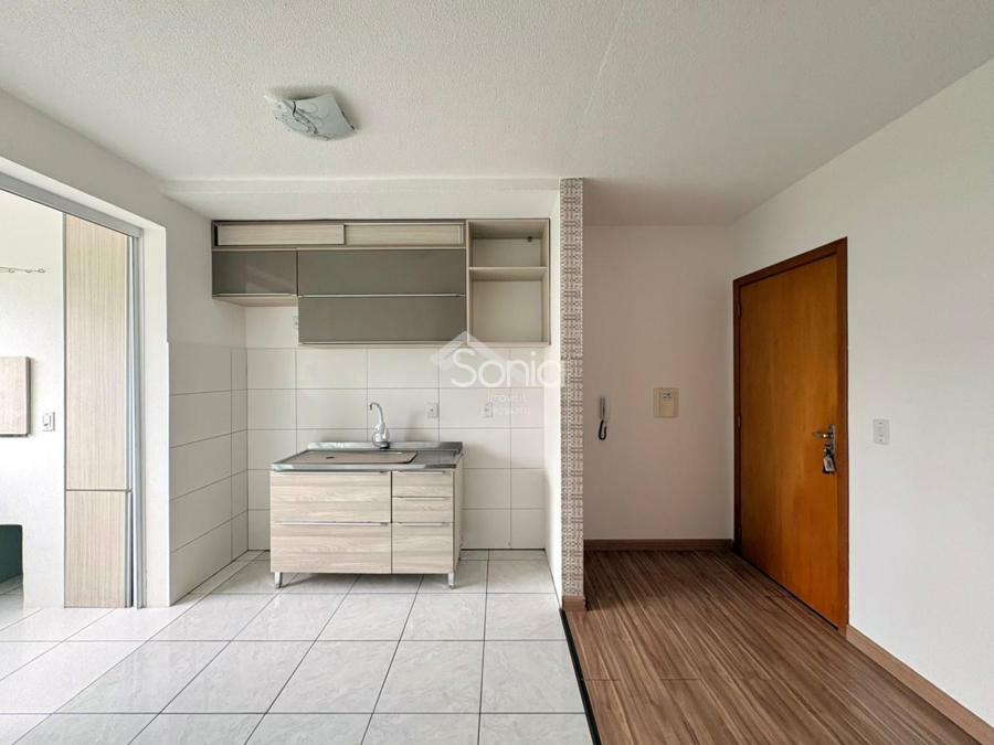 Sonia Imóveis aluga apartamento com sala e cozinha integradas, dois dormitórios, banheiro, lavanderia, churrasqueira e uma vaga de garagem. Localizado em andar baixo, o prédio não possui elevador.