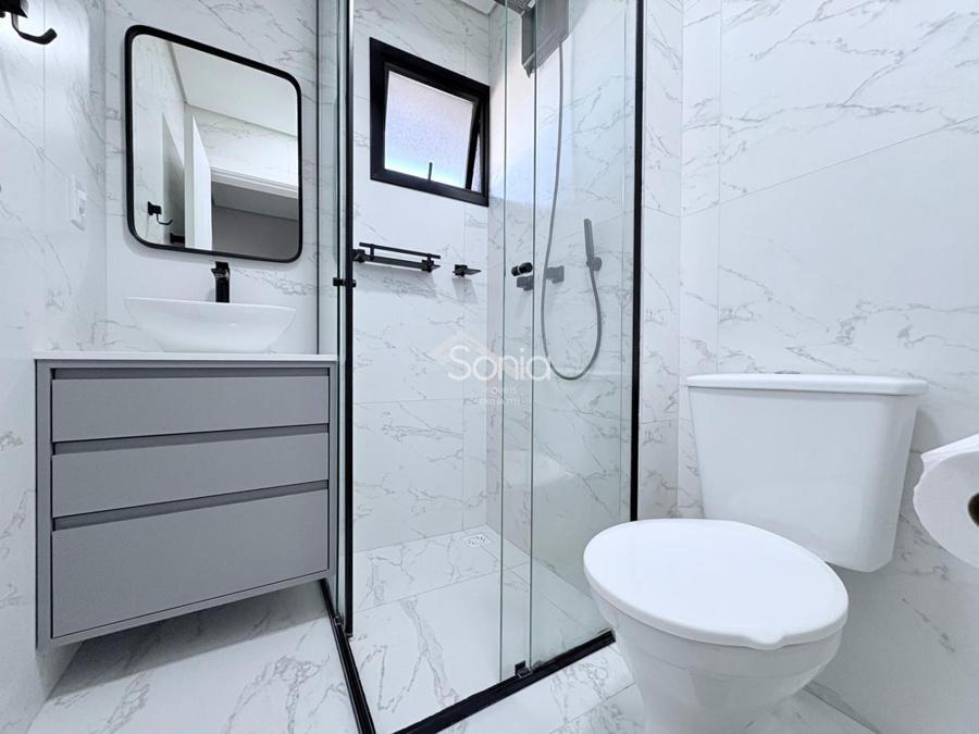 Piso laminado nos dormitórios e piso porcelanato na área social, oferecendo durabilidade e estilo.