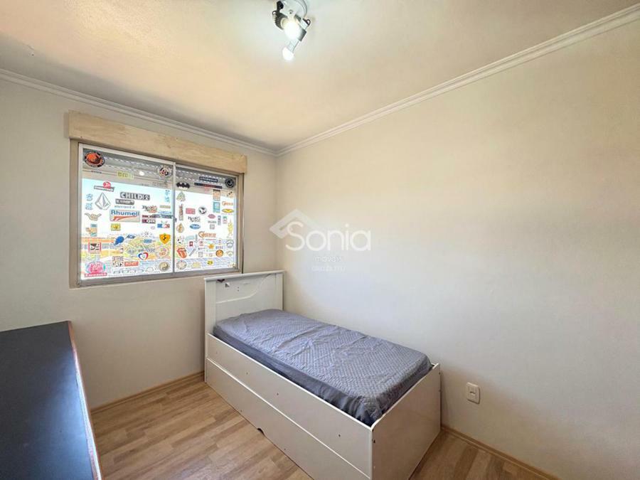 Sonia Imóveis vende apartamento com dois dormitórios, sala de estar e jantar, cozinha, lavanderia, banheiro social, sacada e uma vaga de garagem. Quarto andar de apartamento - prédio sem elevador.
