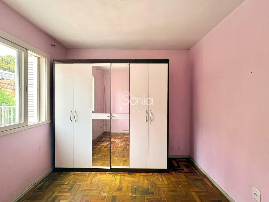 Conta com sala de estar com sacada, cozinha, área de serviço, dois dormitórios, banheiro e uma vaga de garagem. O prédio não possui elevador, mas o imóvel está no primeiro andar, garantindo fácil acesso.