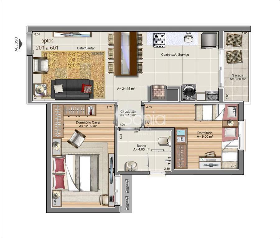 A sacada, adicionando um toque de charme, oferece um espaço arejado para apreciar a paisagem e desfrutar de momentos tranquilos. A localização estratégica do imóvel garante proximidade a serviços essenciais, áreas de lazer e facilidades de transporte, proporcionando conveniência aos moradores.