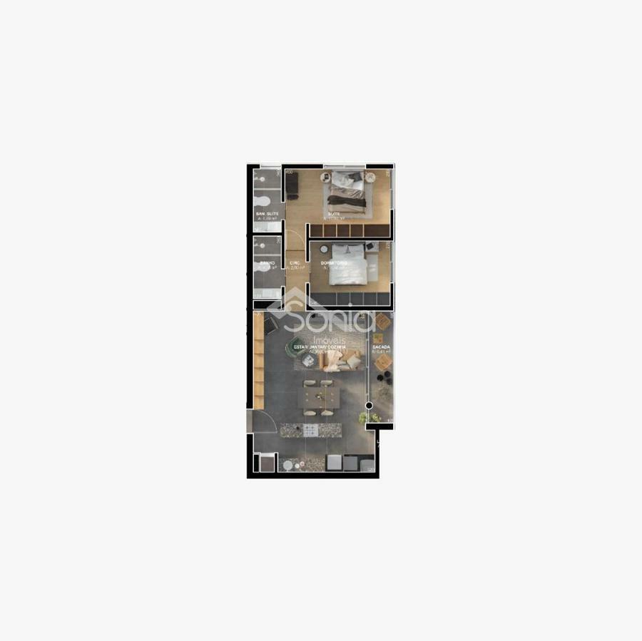 Sonia Imóveis vende apartamento em fase de construção. O imóvel dispõe de sala de estar jantar com espera para lareira e ampla sacada, cozinha, dois dormitórios, sendo um suíte, banheiro social e lavanderia. O empreendimento se destaca pela arquitetura atemporal e elegante, com selo de sustentabilidade e salão de festas. Valor com uma vaga de estacionamento, sendo que as mesmas contam com espera para carros elétricos.