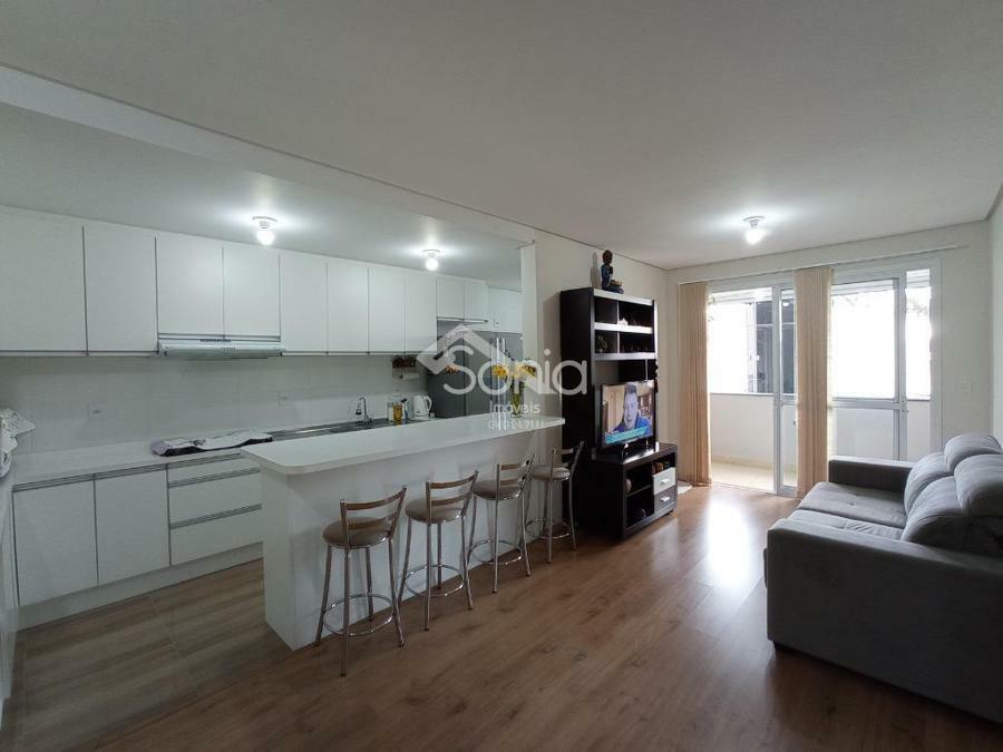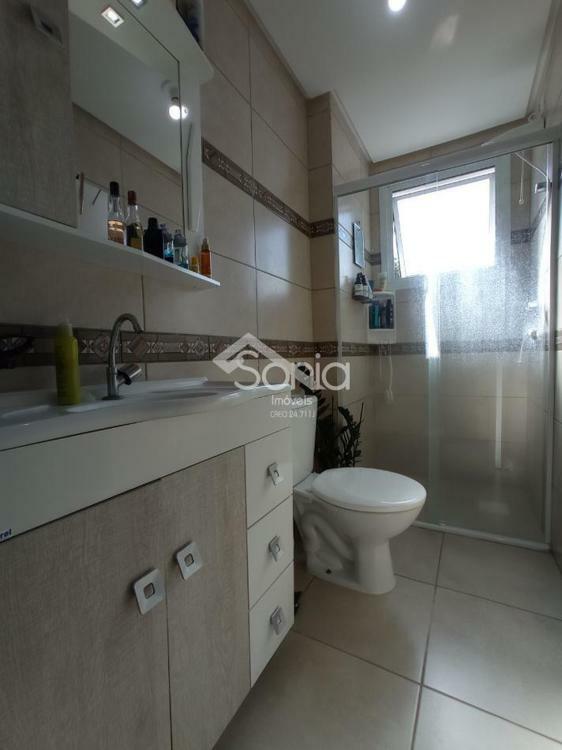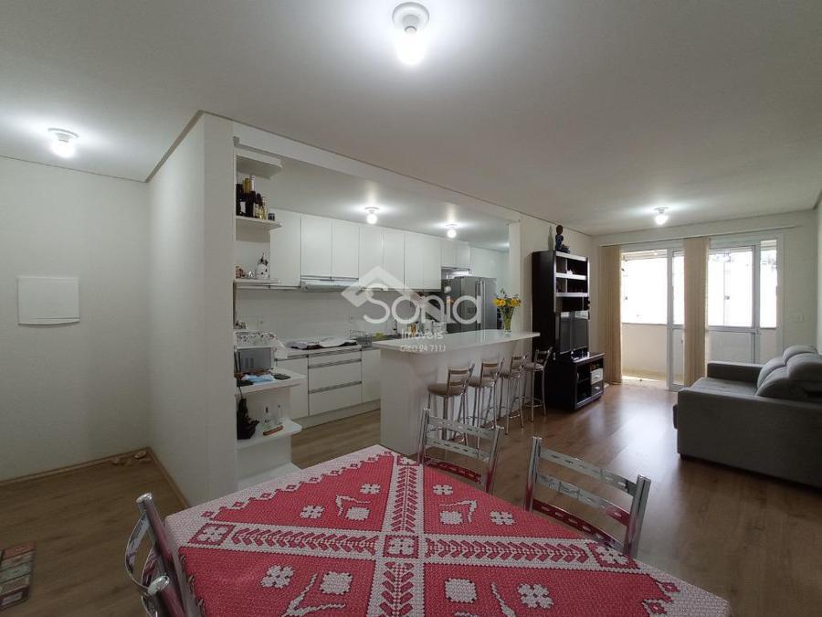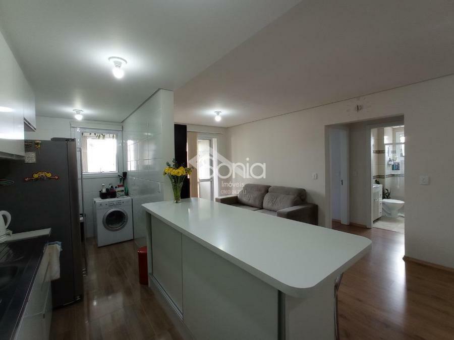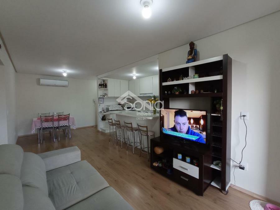 Sonia Imóveis vende apartamento de dois dormitórios, sendo um suíte, sacada fechada com churrasqueira, sala de estar, jantar e cozinha integrados. Bem próximo ao centro, academias, farmácia, mercado... Ficam os móveis da cozinha, em ótimo estado, com piso laminado, rebaixo em gesso, porcelanato nas áreas frias, espera para água quente, medidores individuais, elevador, acesso plano, interfone, ar-condicionado.