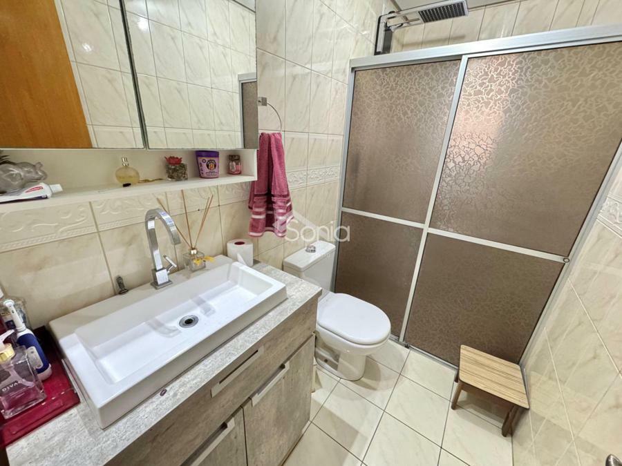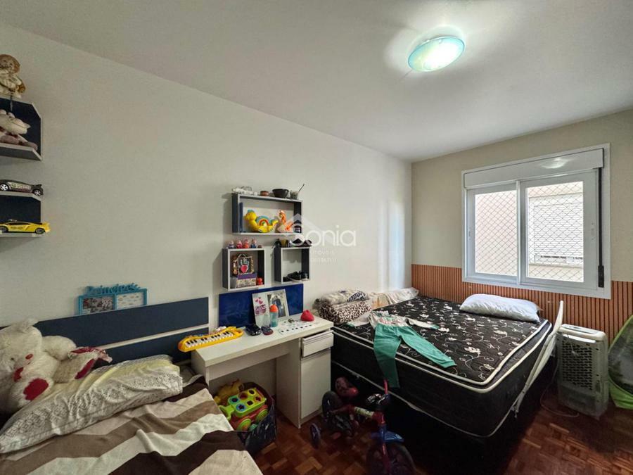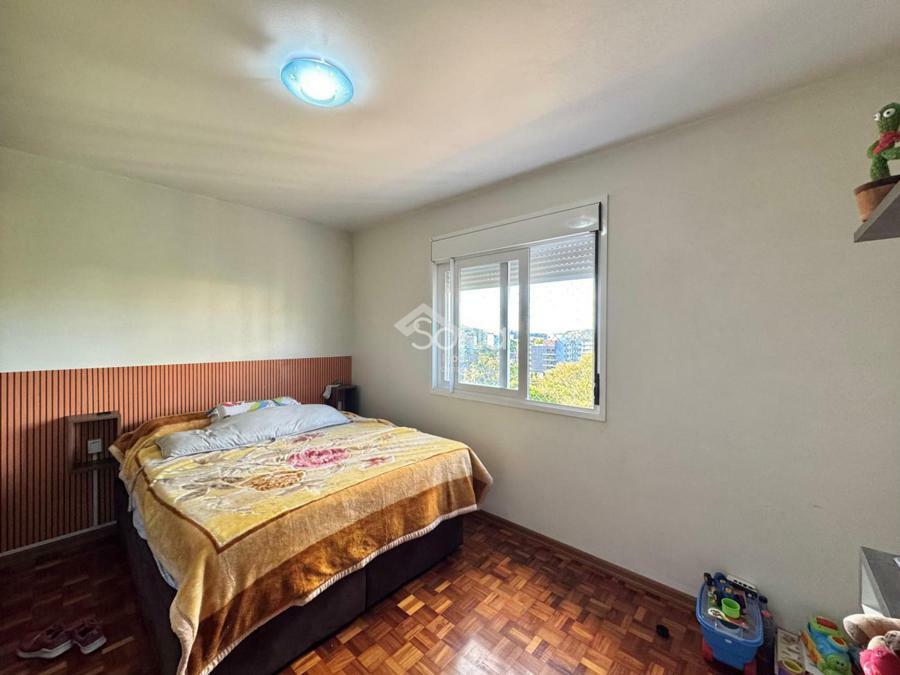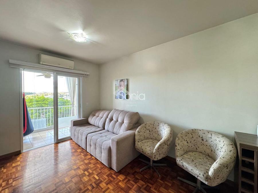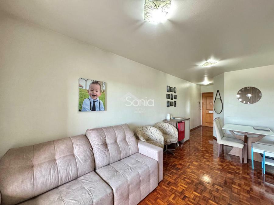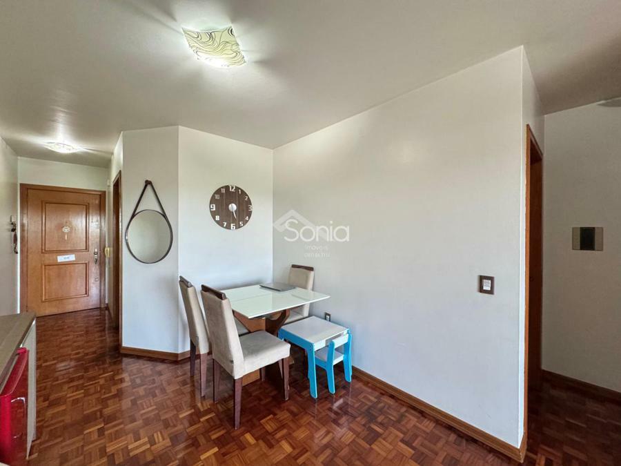 Composto por dois dormitórios, sala de estar e jantar, cozinha, área de serviço com churrasqueira, sacada para a rua, banheiro e uma vaga de garagem.