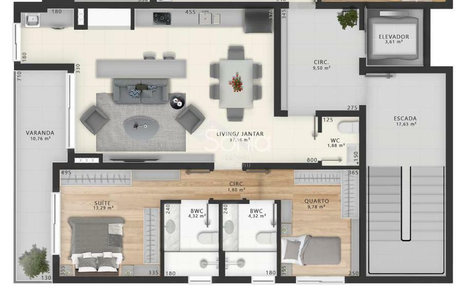 Sonia Imóveis vende apartamento em fase de construção. O imóvel dispõe de cozinha, sala de estar e jantar integrados, lavabo, lavanderia, banheiro, dois dormitorios com suíte. Valor com duas vagas de estacionamento. O empreendimento se destaca pela localização e posição solar privilegiada, conforto e charme. As esquadrias serão em PVC, possui espera para lareira, espera para split. Posição solar: Oeste/Sul.