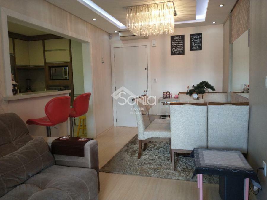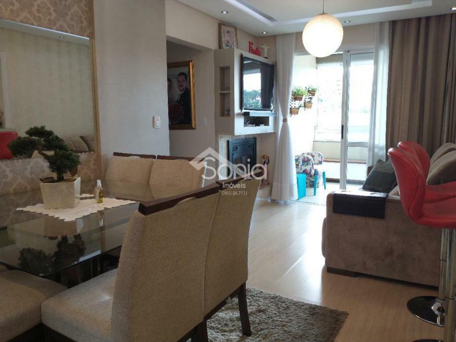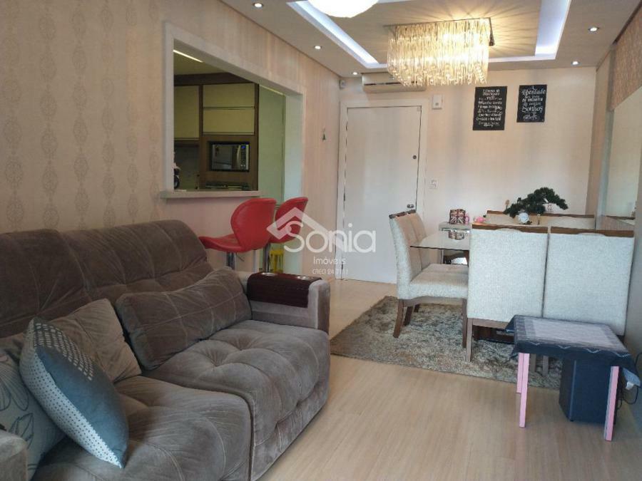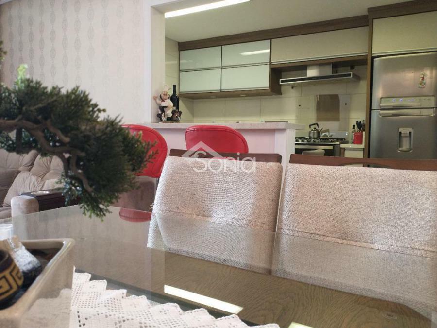 Sonia Imóveis vende apartamento de dois dormitórios, sendo uma suíte, cozinha, sala de estar e jantar integradas, duas sacadas, lavanderia, banheiro. Valor com três vagas de garagem. Medidores individuais de água e gás. Elevador.