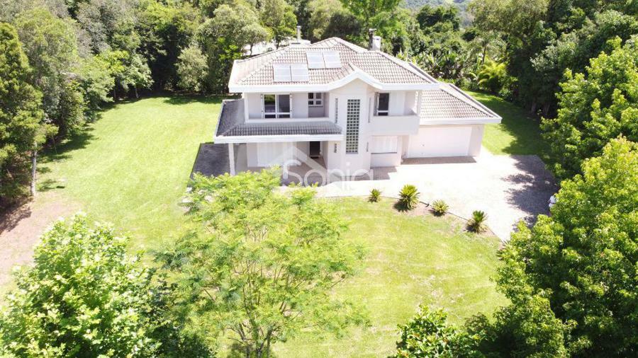 Constituída de um terreno de 8.146m² com uma enorme variedade de plantas nativas e um lindo gramado. Uma casa de 250 m² privativos bem distribuídos, no andar superior com 3 dormitórios com sacadas e 1 banheiro com hidromassagem, na parte de baixo uma cozinha ampla com móveis fixos, sala de estar com lareira que envia o calor para todas as peças da casa através de dutos, escritório, banheiro, depósito, lavanderia, garagem para dois carros onde tem uma pequena cozinha com churrasqueira ficando um espaço para confraternizar com amigos e familiares...
